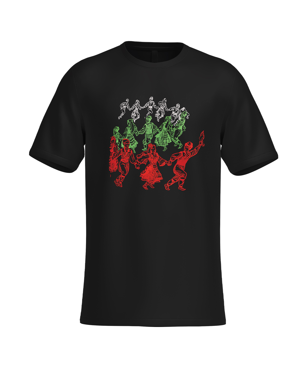 Мъжки, дамски и детски тениски, вдъхновени от традиционната българска народна носия. Практично и достъпно решение за фестивали, празници и събития с народен дрескод. Изработени върху бели и черни тениски, с възможност за различни видове шевици и орнаменти.