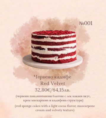 червени пандишпанови блатове с лек какаов вкус , крем маскарпоне и кадифена структура