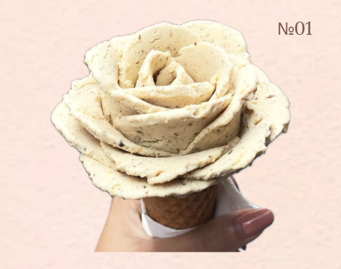(кадифен сладолед с аромат на хрупкава бисквита, оформен като нежна роза - сладко изкушение за очите и