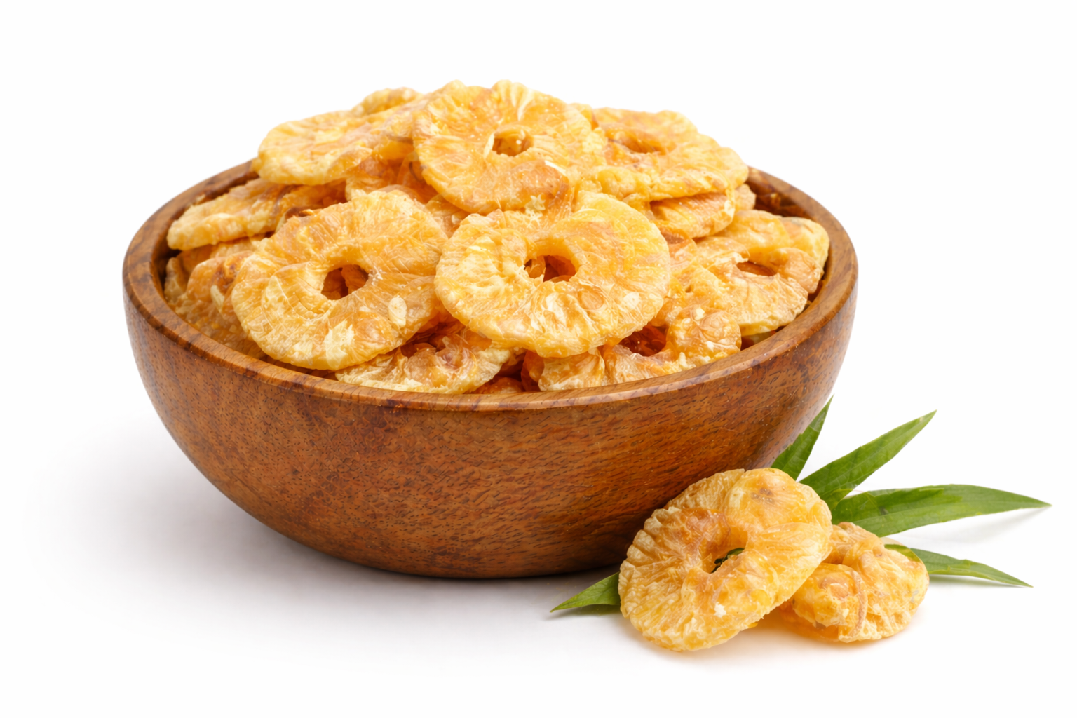 Сушеният ананас е ароматна и освежаваща закуска с естествена сладко-кисела нотка, приготвена от внимателно подбрани узрели плодове. Благодарение на щадящия процес на сушене той запазва своя интензивен вкус и ценни хранителни вещества, като е богат на фибри и витамини, без добавена захар и изкуствени съставки. Подходящ е както за директна консумация, така и като вкусно допълнение към мюсли, йогурт или десерти, носейки екзотично удоволствие във всяка хапка.