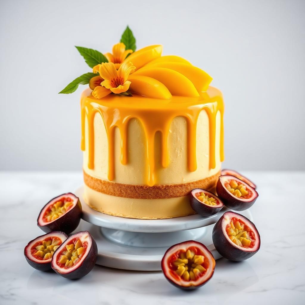 Сочен манго мус, пикантна глазура от маракуя и тропически цветя — слънчево бягство във всяка хапка.