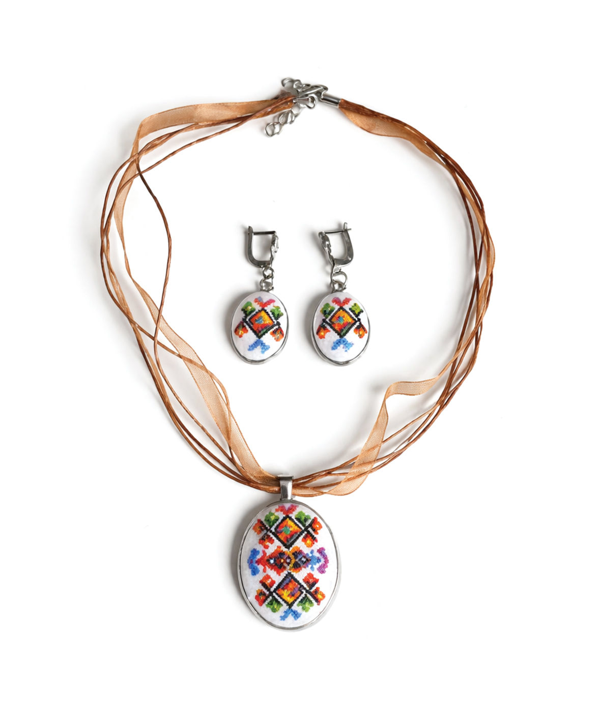 Впечатляващ комплект обеци и колие, вдъхновен от мотивите на Чипровските килими. Символите носят послание за семейство, род и традиция, съчетани с модерен стил.