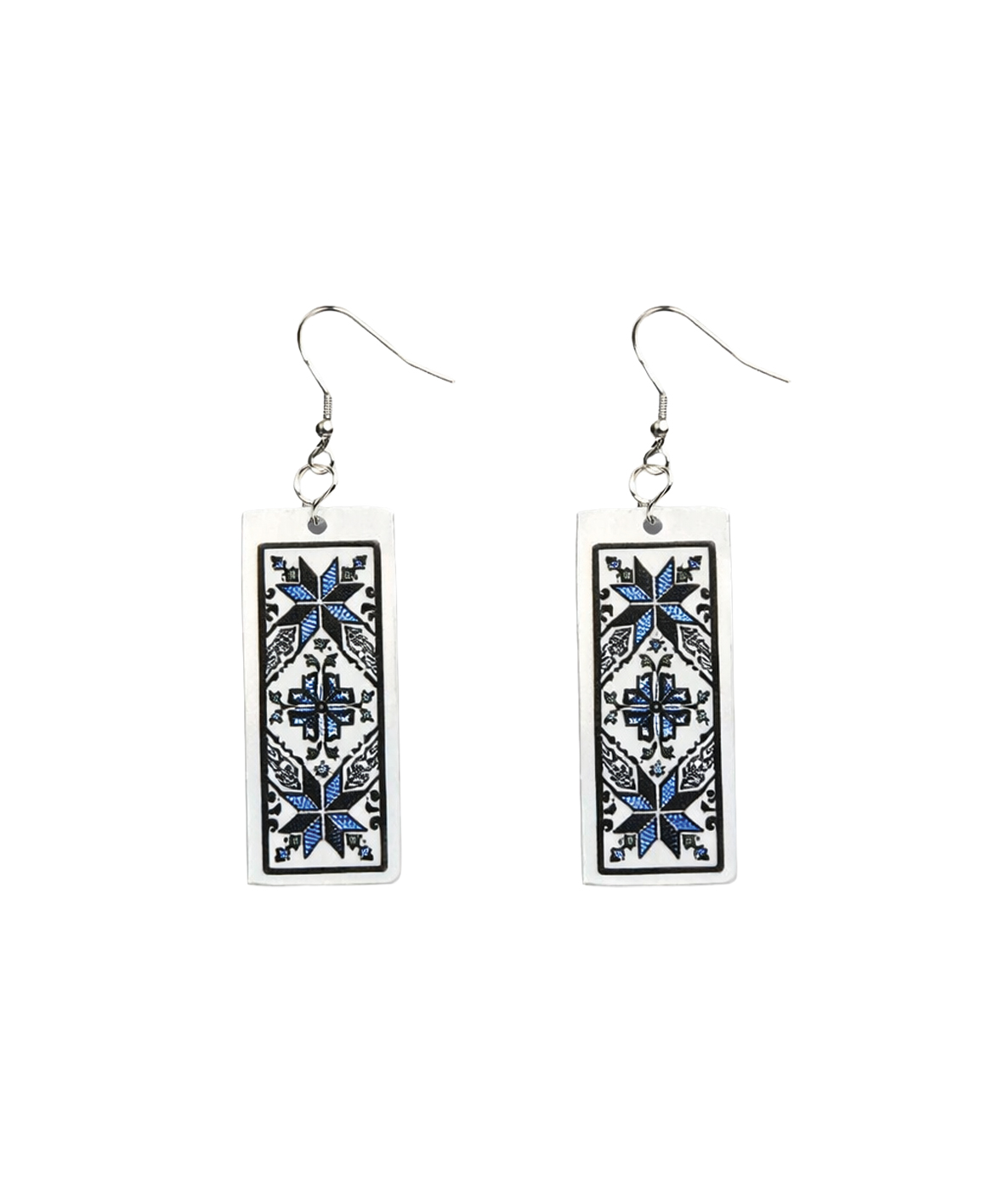 Елегантни обеци с мотив „Боряна“ от българска бесарабска шевица – символ на закрила и хармония. Наситеният син цвят и съвременният дизайн ги правят стилен аксесоар за всеки повод.